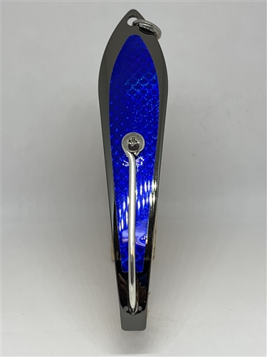 Our #200 Gator Kingspoon® Black Nickel with Blue tape is made of high quality stainless steel. The spoon is 4 11/16″ long and has a saltwater 7/0 hook and a heavy duty stainless steel split ring. The weight is .9 oz.