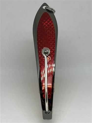 Our #200 Gator Kingspoon® Black Nickel with Red tape is made of high quality stainless steel. The spoon is 4 11/16″ long and has a saltwater 7/0 hook and a heavy duty stainless steel split ring. The weight is .9 oz.