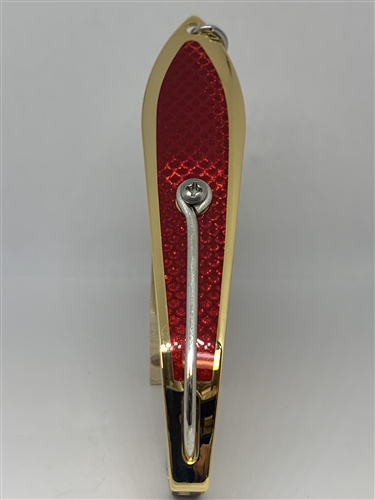 Our #250 Gator Kingspoon® Gold with Red Tape is made of high quality stainless steel. The spoon is 4 11/16″ long and has a saltwater 7/0 hook and a heavy duty stainless steel split ring. The weight is 1.1 oz.